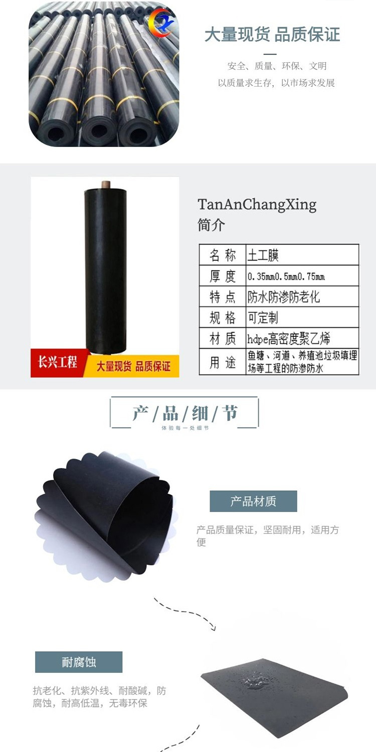 1.5mm土工膜施工方法 填埋场复合土工膜批发 长兴牌