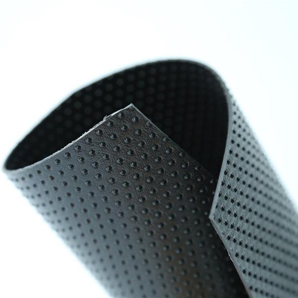 双糙面土工膜以塑料薄膜作为防渗基材,与无纺布复合而成的土工防渗材料,它的防渗性能主要取决于塑料薄膜的防渗性能。目前,国内外防渗应用的塑料薄膜,主要有聚氯乙烯(PVC)和聚乙烯(PE)、EVA(乙烯醋酸乙烯共聚物),它们是一种高分子化学柔性材料,比重较小,延伸性较强,适应变形能力高,耐腐蚀,耐低温,抗冻性能好。其主要机理是以塑料薄膜的不透水性隔断土坝漏水通道,以其较大的抗拉强度和延伸率承受水压和适应坝体变形。
